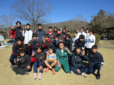 2月1日(日)、清酒開華スタジアム(佐野市運動公園陸上競技場)を会場に、大澤駅伝競走大会が開催されました。この大会の起源となる大澤龍雄氏は、佐野市出身で、長距離走者として県内はもとより、関東・全国大会でも活躍された方です。佐野高校から日本大学に進学してからは、箱根駅伝競走をはじめ各種大会で活躍し、大学2年時には日米対抗陸上競技大会に日本代表として出場しました。また、3000m障害走で日本新記録を樹立しましたが、太平洋戦争により27歳という若さで戦死されました。この郷土の生んだ偉大なランナーを称え「大澤駅伝競走大会」として毎年開催されている大会です。本校からは男子1チームが参加し、県内、関東、福島などからの参加もある高レベルの大会の中、入賞を目指し頑張っていました。補助の生徒や応援の生徒も参加し、大会を盛り上げてくれました。