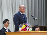 3月31日(月)城東中体育館で離任式が行われました。3月26日にさくら連絡網でお知らせしました通り、今回の定期異動により、10名の教職員が転退職となりました。本日の離任式では卒業式を終えた3年生を含め、多くの生徒が最後の別れに来てくれました。式では、生徒会長からの別れの言葉と生徒会役員代表からの花束が贈られ、その後、転退職者一人一人から最後のお別れの挨拶をいただきました。