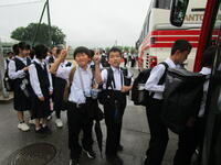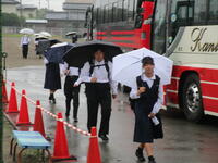 6月10日(火)7時に1年生が東京校外学習に出発しました。心配された雨も出発の時点では、ほぼ止んでおり、生徒たちは体育館で実行委員による出発式を行った後、それぞれのバスに乗車し、楽しい表情で出発しました。