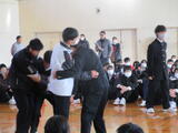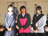 1月28日(水)のみとせ集会では、新体制になった生徒会本部役員の企画で、「よりよい社会を築くために」をテーマに、学校生活で気になっていることを、寸劇の形で他の生徒たちに訴えました。特に校則が再度見直され、髪型が柔軟になり、手鏡やくしを持って、歩きながら髪をとかす様子やトイレで必要以上に話をする場面などを見せ、自分たちがどう感じるか感想を述べ合い、生徒たち自身で学校や社会をより良くしようとする自治的能力を養っていました。