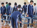 2月27日(金)の5,6校時に2年生の生徒たちが3月10日の卒業式の会場準備をしてくれました。生徒はそれぞれの分担に分かれ、椅子の縦、横がきれいに並ぶように、床のマス目などを数えながら、きれいに並べていました。城東中学校の生徒は、主体的に活動してくれるので予定時刻よりも早く準備が終わりました。ご苦労様でした。