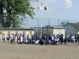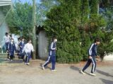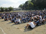 出火場所を聞き、マスク等を使って煙を吸わないようにして、安全な場所(校庭の部室等前)に集合しました。
